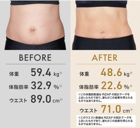 また、RIZAPはただ痩せるだけでなく、見た目も健康も美しく変えることを重視しています。筋肉を落とさずに脂肪を減らす独自メソッドにより、引き締まったボディラインを実現。数値上の変化だけでなく、鏡を見るたびに感じる「変わった自分」こそが、RIZAPの最大の魅力です。
